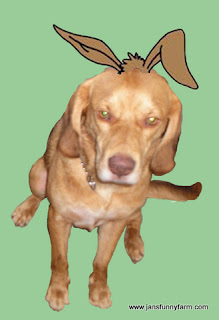 Yes, some of you already know me as Dr. Buddy, the renowned (at least around the Funny Farm and The Meezers') brain surgeon. But very soon I will be Dr. Buddy, Assistant Hound to the Easter Bunny. And the other Funny Farmers will be my assistants. As usual, I will be in charge, and they will most likely be their usual 4 left paws selves. But if they do a good job, they can wear bunny ears next year.